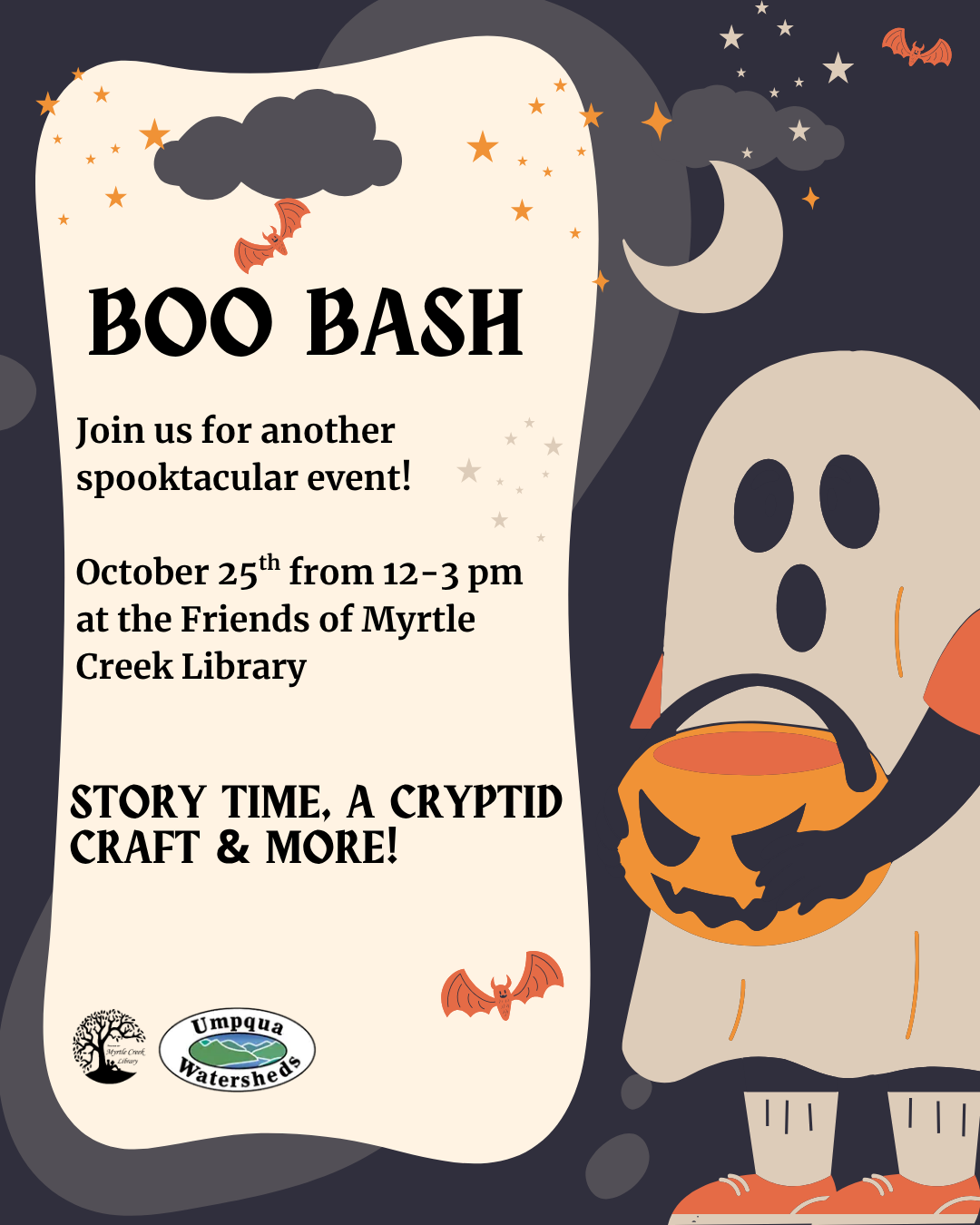 Hey kids! Join Friends of Myrtle Creek Library for another spooktacular event on Saturday, Oct 25 from 12 to 3 pm.